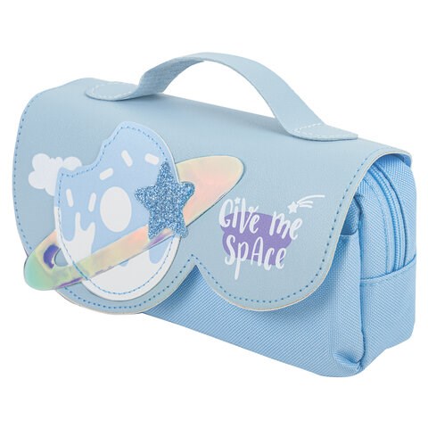 Пенал мягкий ЮНЛАНДИЯ с ручкой, 2 отделения, полиэстер, "My Space", голубой, 21х9х6 см, 271578