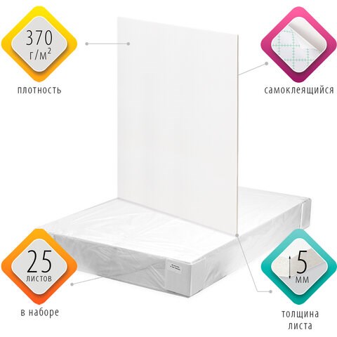 САМОКЛЕЯЩИЙСЯ белый пенокартон форматом 70х100 см толщиной 5 мм. Единица товара - 1 лист.