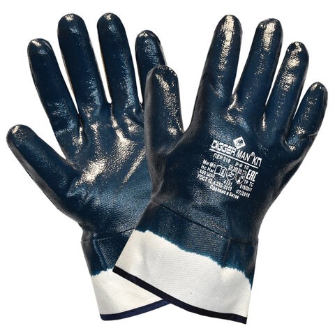 Перчатки нитриловые DIGGERMAN КП предназначены для защиты рук от механических воздействий (проколы, порезы, истирания), сырой нефти, нефтяных масел и продуктов тяжелых фракций, кислот и щелочей концентрацией до 50% в зоне покрытия полимером.