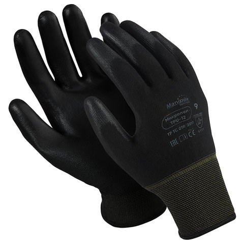 Перчатки нейлоновые MANIPULA "Микропол", полиуретановое покрытие (облив), размер 9 (L), черные, TPU-12