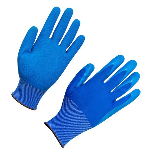 Перчатки полиэфирные РУБИСЕНС прочные эластичные 1 пара, 15 класс, 59-61 г, разм 9, покрытие - облив РЕЛЬЕФНЫЙ ЛАТЕКС, супер сцепление, СВС, pe15nt син/син
