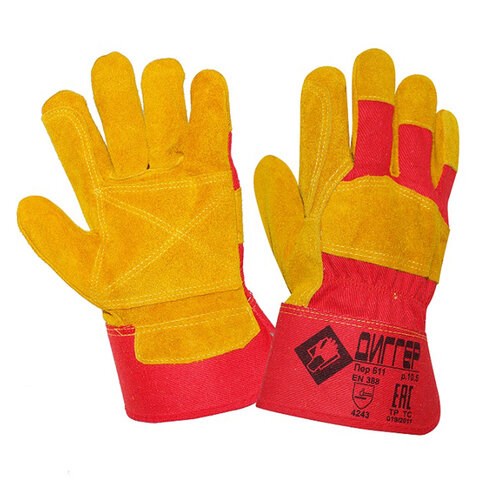 Перчатки спилковые комбинированные ДИГГЕР, усиленные, размер 10,5 (XL), желтые/красные, ПЕР611