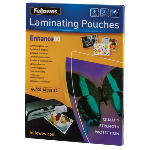 Пленка для ламинирования FELLOWES формата А4 (216Х303 мм) имеет уникальный состав: полиэтилентерефталат (PET), этиленвинилацетат (EVA), полиэтилен (LDPE). Промежуточный слой полиэтилена (LDPE) выступает как связующий элемент между слоями PET и EVA, служит дополнительной защитой от вероятного вытекания клея из-под пленки при ламинировании. Полиэтилен (PE) придает пакетам прочность, эластичность и износостойкость.