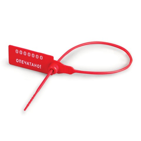 Пломбы пластиковые номерные УНИВЕРСАЛ, самофиксирующиеся, длина рабочей части 220 мм, КРАСНЫЕ, КОМПЛЕКТ 1000 шт., 600805