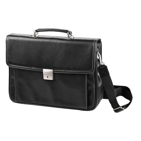 Портфель из натуральной кожи, 38х27х12 см, 2 отделения, замок с ключом, черный, 2-237