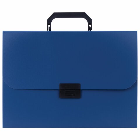 Изготовлен из пластика толщиной 0,6 мм, выполнен в синем цвете с фактурой "песок" и имеет 7 отделений для удобства в систематизации документов формата А4. Складная ручка обеспечивает компактность изделия. Портфель застегивается на клапан. Размер - 330х235х36 мм.