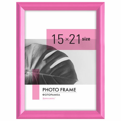 Рамка 15х21 см небьющаяся, багет 17,5 мм, пластик, BRAUBERG "Colorful", розовая, 391247