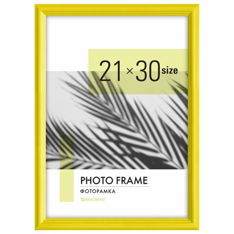Рамка 21х30 см небьющаяся, багет 17,5 мм, пластик, BRAUBERG "Colorful", желтая, 391246