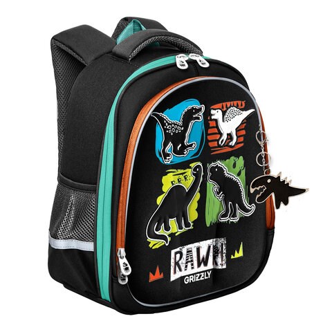 Ранец GRIZZLY анатомическая спинка, картхолдер, для мальчиков, DINO, 36х28х20 см, RAz-387-6/1