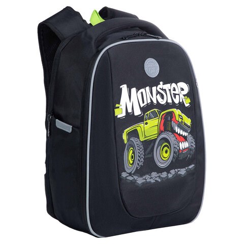 Ранец GRIZZLY анатомическая спинка, с бейджем, для мальчиков, "MONSTER CAR", 36х29х18 см, RAf-293-2/1