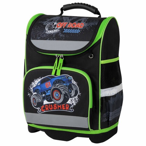 Жесткокаркасный ранец выполнен из прочного, износостойкого полиэстера. Ранец состоит из одного просторного отделения, одного переднего и двух боковых карманов.