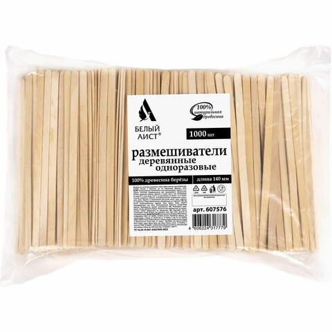 Размешиватели изготовлены из древесины березы. Безопасны при использовании, так как не выделяют вредных вещества при взаимодействии с горячей жидкостью. Подойдут как для холодных, так и для горячих блюд (до +95°). Предназначены для одноразового применения, легко утилизируются. Длина - 140 мм. Ширина - 6 мм. Толщина - 2 мм. В комплекте 1000 штук.