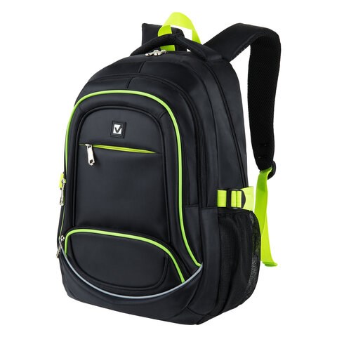 Рюкзак BRAUBERG HIGH SCHOOL универсальный, 3 отделения, "Акцент", черный/салатовый, 46х31х18 см, 270761