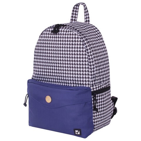 Рюкзак BRAUBERG SYDNEY универсальный, карман с пуговицей, бело-синий, узор клетка, 38х27х12 см, 228840