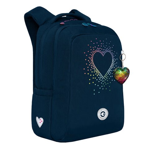 Рюкзак GRIZZLY школьный, анатомическая спинка, 2 отделения, для девочек, "HEART", 39х26х17 см, RG-366-6/2