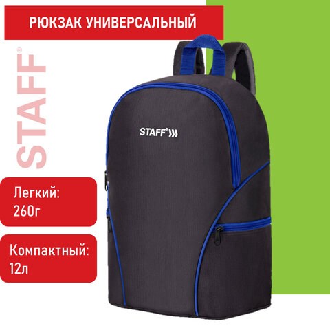 Рюкзак STAFF TRIP универсальный, 2 кармана, черный с синими деталями, 40x27x15,5 см, 270786
