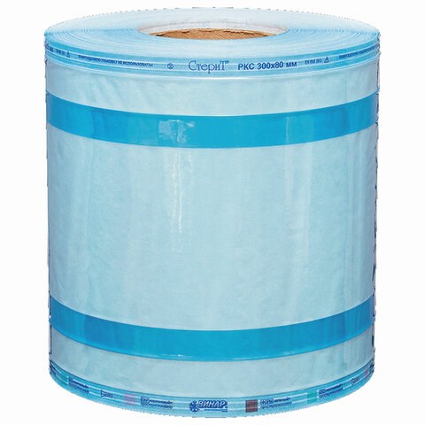 Рулон комбинированный со складкой ВИНАР СТЕРИТ, для ПАРОВОЙ/ГАЗОВОЙ стерилизации, 300 мм х 80 мм х 100 м