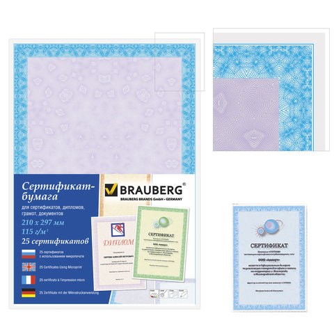 Сертификат-бумага для лазерной печати BRAUBERG предназначена для изготовления сертификатов, грамот, дипломов, памятных и других важных документов. Идеальна для письма масляными, капиллярными и шариковыми ручками.