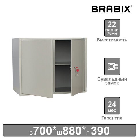 Шкаф металлический для документов (антресоль) BRABIX "KBS-09", 700х880х390 мм, 30 кг, сварной, 291158