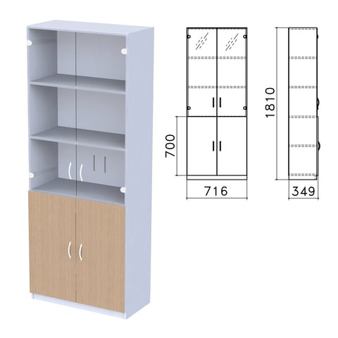 Шкаф закрытый со стеклом "Бюджет", 716х349х1810 мм, орех онтарио (КОМПЛЕКТ)