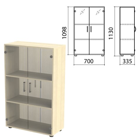 Шкаф закрытый со стеклом "Канц", 700х335х1130 мм, цвет дуб молочный (КОМПЛЕКТ)