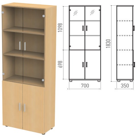 Шкаф закрытый со стеклом "Канц", 700х350х1830 мм, цвет бук невский (КОМПЛЕКТ)