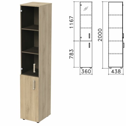 Шкаф закрытый со стеклом "Приоритет", 360х438х2000 мм, 4 полки, кронберг (КОМПЛЕКТ)