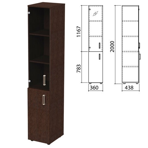 Шкаф закрытый со стеклом "Приоритет", 360х438х2000 мм, 4 полки, венге (КОМПЛЕКТ)