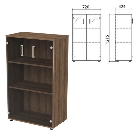 Шкаф закрытый со стеклом "Приоритет", 720х424х1215 мм, 2 полки, лагос (КОМПЛЕКТ)