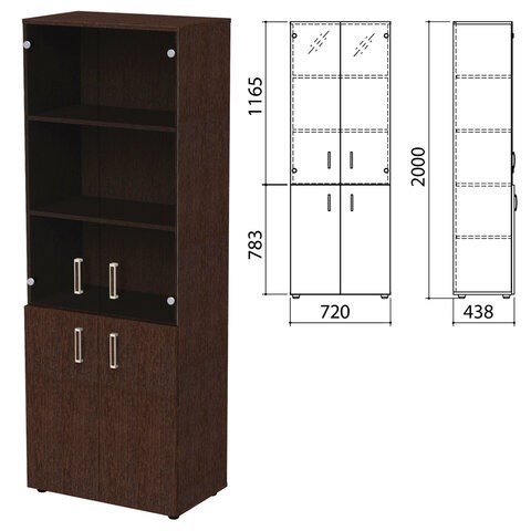 Шкаф закрытый со стеклом "Приоритет" 720х438х2000 мм, 4 полки, венге (КОМПЛЕКТ)
