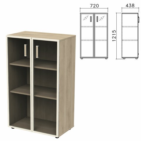 Шкаф закрытый со стеклом в алюминиевой рамке "Приоритет" 720х438х1215 мм, 2 полки, кронберг (КОМПЛЕКТ)