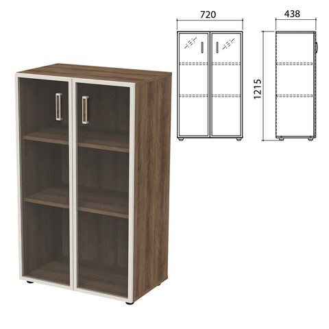 Шкаф закрытый со стеклом в алюминиевой рамке "Приоритет", 720х438х1215 мм, 2 полки, лагос (КОМПЛЕКТ)