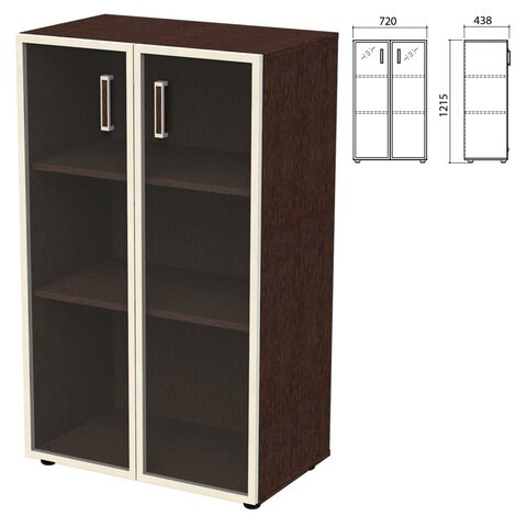 Шкаф закрытый со стеклом в алюминиевой рамке "Приоритет" 720х438х1215 мм, 2 полки, венге (КОМПЛЕКТ)
