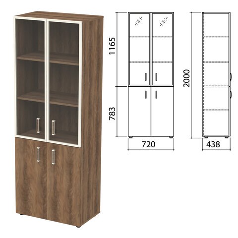 Шкаф закрытый со стеклом в алюминиевой рамке "Приоритет", 720х438х2000 мм, 4 полки, лагос (КОМПЛЕКТ)