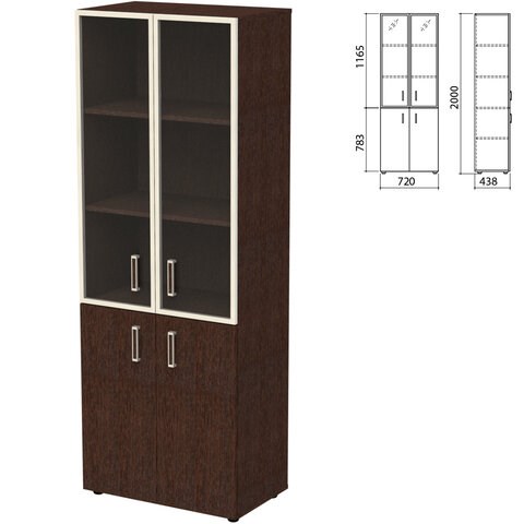 Шкаф закрытый со стеклом в алюминиевой рамке "Приоритет" 720х438х2000 мм, 4 полки, венге (КОМПЛЕКТ)