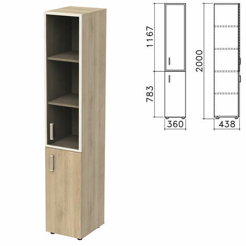 Шкаф закрытый со стеклом в алюминиевой рамке "Приоритет", правый 360х438х2000 мм, 4 полки, кронберг (КОМПЛЕКТ)