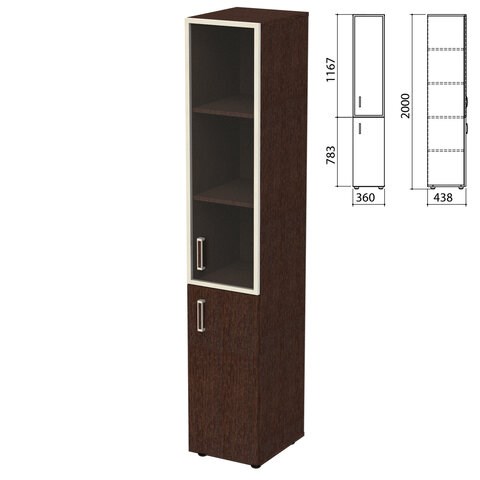 Шкаф закрытый со стеклом в алюминиевой рамке "Приоритет", правый 360х438х2000 мм, 4 полки, венге (КОМПЛЕКТ)