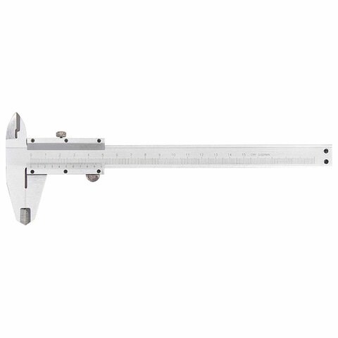 Металлический штангенциркуль с глубиномером, со шкалой 150 мм, со значением отсчета по нониусу 0,02 мм используется для быстрого определения размеров внутри и снаружи деталей, а также глубин отверстий и канавок — для этого предусмотрен глубиномер.