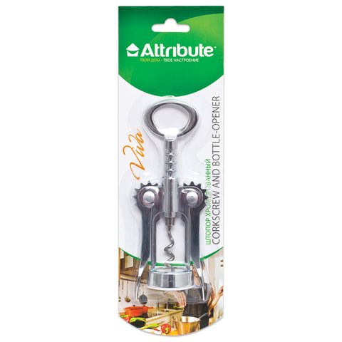 Штопор-открывалка, 2-х рычажный, хромированный, блистер с европодвесом, "Viva", ATTRIBUTE, ATV614, AGV225