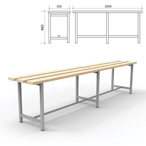 Скамья предназначена для эксплуатации в раздевалках спортивных учреждений, предприятий, офисов. Металлический каркас и доски из натуральной древесины обеспечивают надежность и долговечность эксплуатации. Простая сборка.