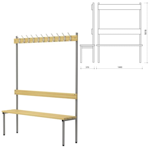 Скамья с вешалкой, спинкой П-091Д/1,5 (1818х1480х370 мм), 11 крючков, дерево, металлокаркас