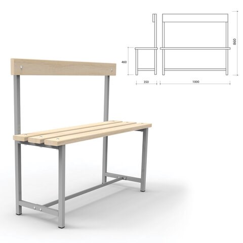 Скамья со спинкой предназначена для эксплуатации в раздевалках спортивных учреждений, предприятий, офисов. Металлический каркас и доски из натуральной древесины обеспечивают надежность и долговечность эксплуатации. Простая сборка.