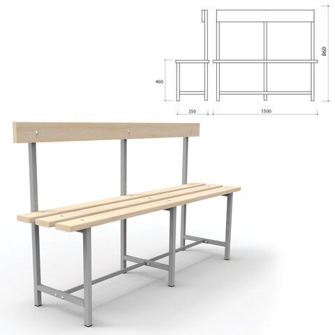 Скамья со спинкой предназначена для эксплуатации в раздевалках спортивных учреждений, предприятий, офисов. Металлический каркас и доски из натуральной древесины обеспечивают надежность и долговечность эксплуатации. Простая сборка.