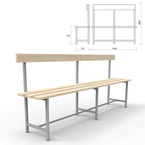 Скамья со спинкой предназначена для эксплуатации в раздевалках спортивных учреждений, предприятий, офисов. Металлический каркас и доски из натуральной древесины обеспечивают надежность и долговечность эксплуатации. Простая сборка.