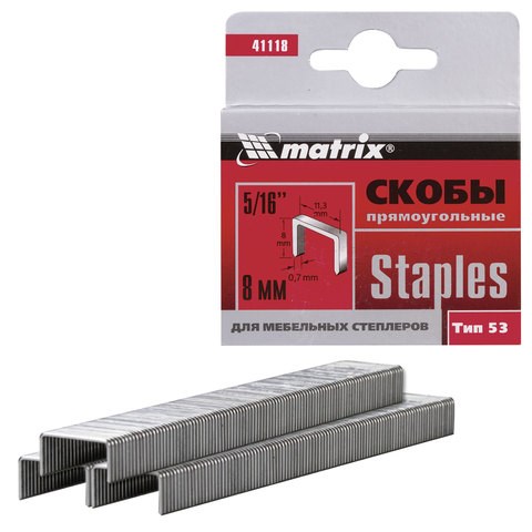 Скобы для степлера мебельного, тип 53, 8 мм, MATRIX, количество 1000 шт., 41118