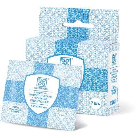 Спиртовые салфетки антисептические 135x185 мм КОМПЛЕКТ 7 шт., АСЕПТИКА, короб-подвес