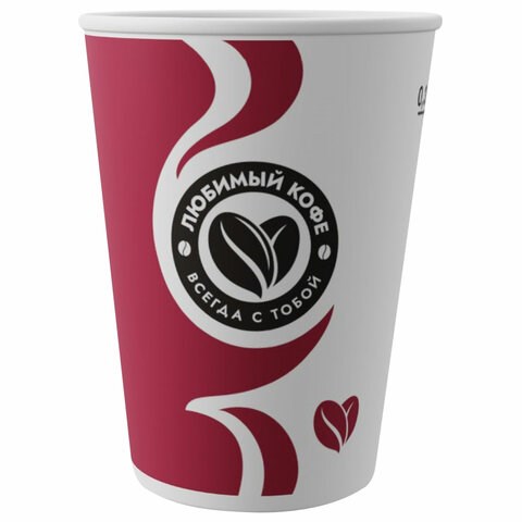 Стакан одноразовый бумажный 300/425 мл, D 90 мм, 50 шт., однослойный для холодного/горячего, "Любимый кофе", СКАНДИПАКК, -5103