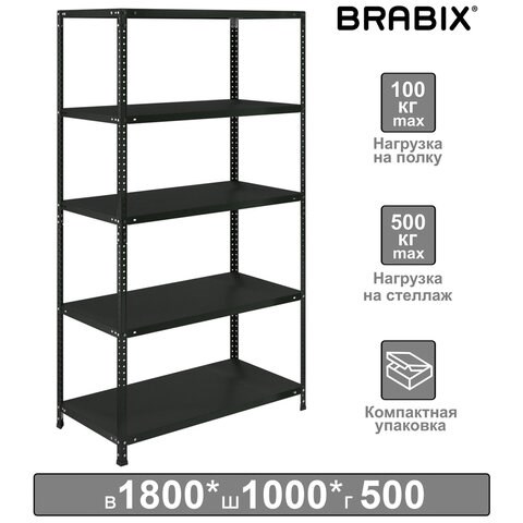 Металлический стеллаж BRABIX собирается с помощью болтов, за счет чего достигается устойчивая конструкция. Простой и экономичный способ организовать хранение вещей и различных грузов. Прекрасно дополняет интерьер в стиле "лофт" благодаря цвету "графит".