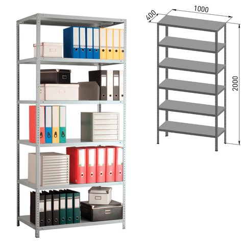 Стеллаж металлический ПРАКТИК "MS", 2000х1000х400 мм, 6 полок, MS 200/100х40/6