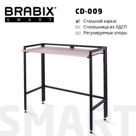 Стол BRABIX "Smart CD-009", 800х455х795 мм, ЛОФТ, складной, металл/ЛДСП дуб, каркас черный, 641874